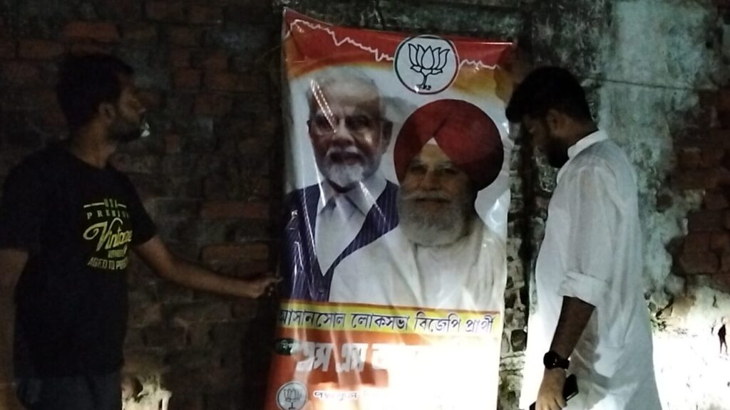 रानीगंज । आसनसोल लोकसभा क्षेत्र से भाजपा उम्मीदवार सुरेंद्र सिंह अहलूवालिया की घोषणा के बाद से आसनसोल के विभिन्न हिस्सों में भाजपा कार्यकर्ताओं के समर्थकों द्वारा दीवार लेखन, बैनर और पोस्टर लगाए गए हैं। आसनसोल दक्षिण विधानसभा के एगरा ग्राम पंचायत क्षेत्र में कई स्थानों पर भाजपा उम्मीदवार सुरेंद्र सिंह अहलूवालिया के बैनर और पोस्टर लगाए गए। भाजपा के युवा नेता अभिक कुमार मंडल ने आरोप लगाया कि गुरुवार की रात के अंधेरे में तृणमूल के उपद्रवियों ने अचानक उन पोस्टरों और बैनरों को फाड़ दिया।