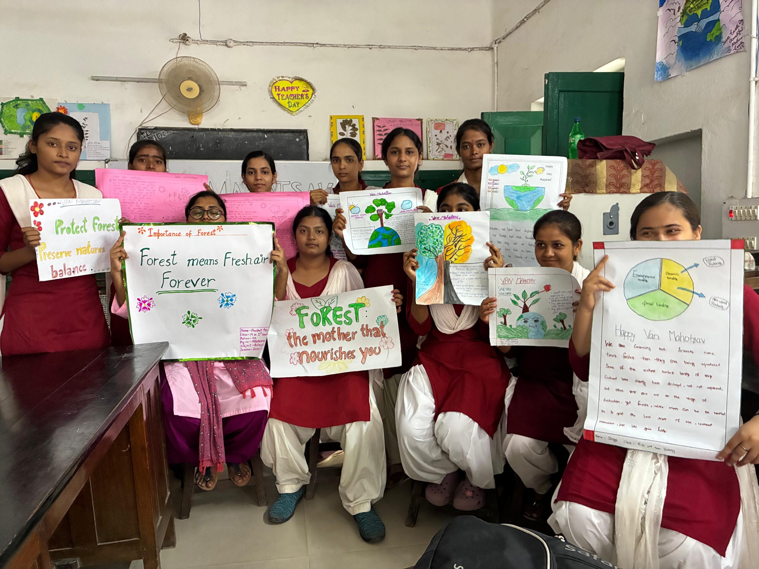 प्रतियोगिता में सुरभि, सलोनी, नरविदा, स्वाति, दिव्या, शताक्षी सहित अनेक छात्राओं ने भाग लिया और पर्यावरण संरक्षण का संदेश दिया।